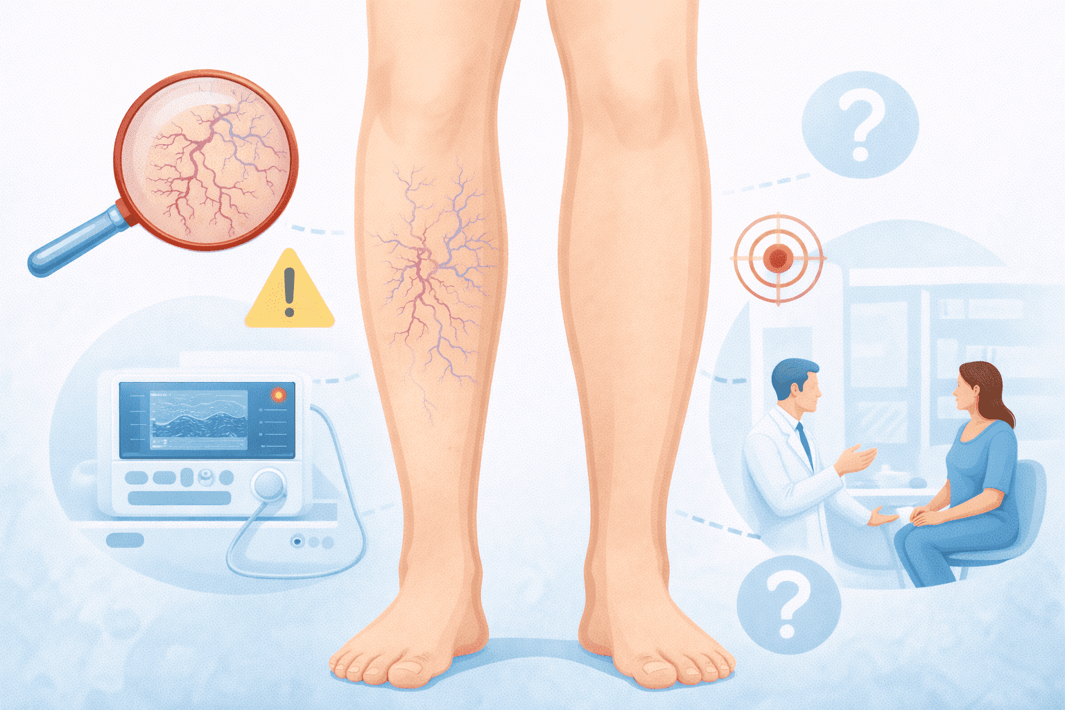 Перед процедурой удаления необходимо понять, что происходит с венозной системой в целом. Без диагностики устранение сосудистой сетки может дать лишь временный эффект.